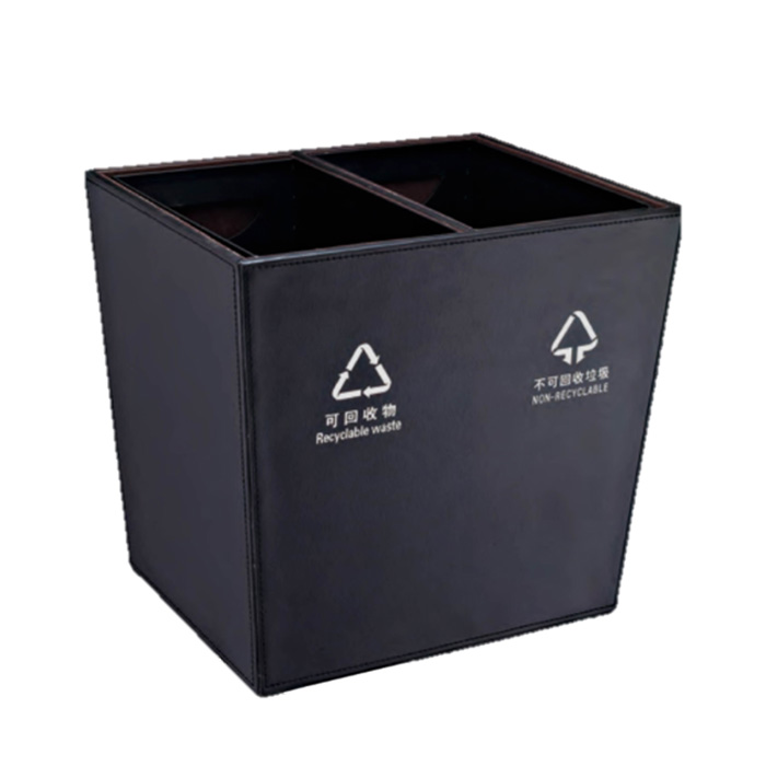 / 雙格皮製垃圾桶(內含鐵桶)